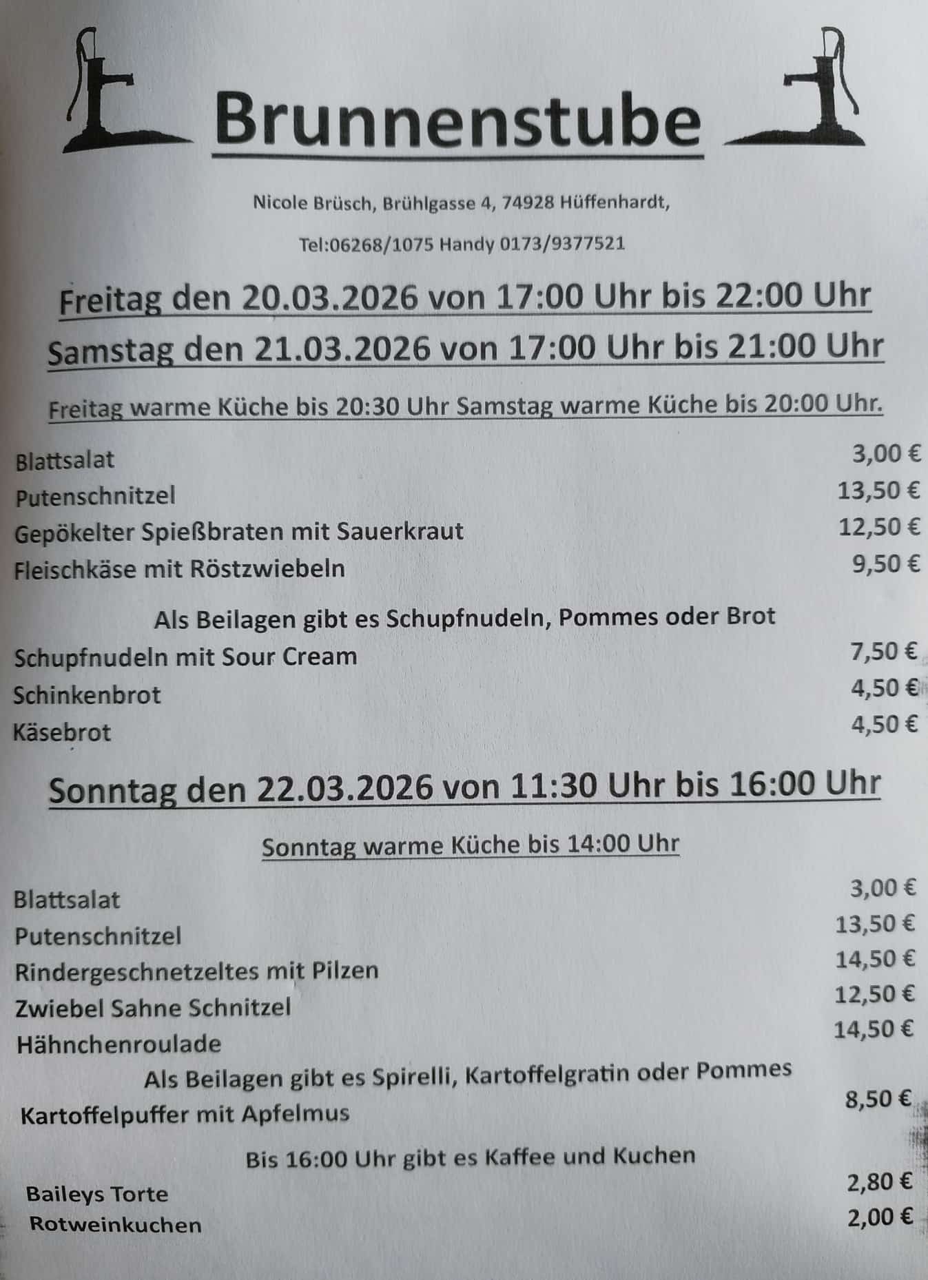 Inmitten unserer malerischen Gemeinde Hüffenhardt, in der Brühlgasse 4, öffnet sich Ihnen mit der Brunnenstube ein Ort, an dem Genuss, Gastlichkeit und herzliche Gemeinschaft großgeschrieben werden.