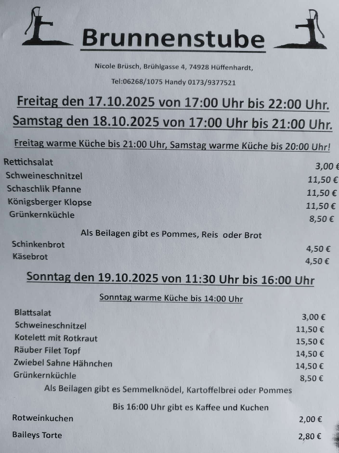 Speisekarte für Kerwe 2025, Kalenderwoche 43, 26.10.2025 - 27.10.2025
