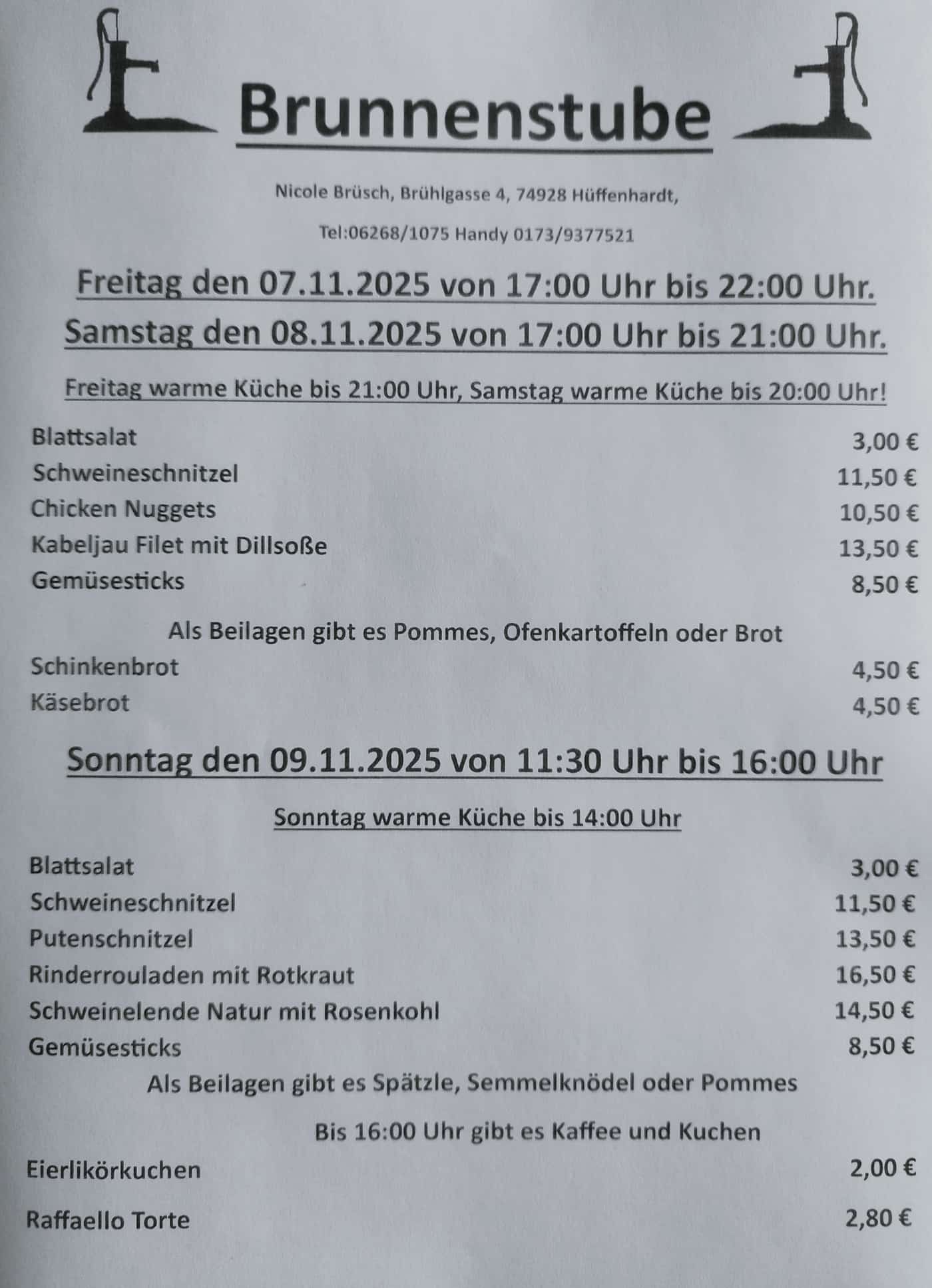 Inmitten unserer malerischen Gemeinde Hüffenhardt, in der Brühlgasse 4, öffnet sich Ihnen mit der Brunnenstube ein Ort, an dem Genuss, Gastlichkeit und herzliche Gemeinschaft großgeschrieben werden.
