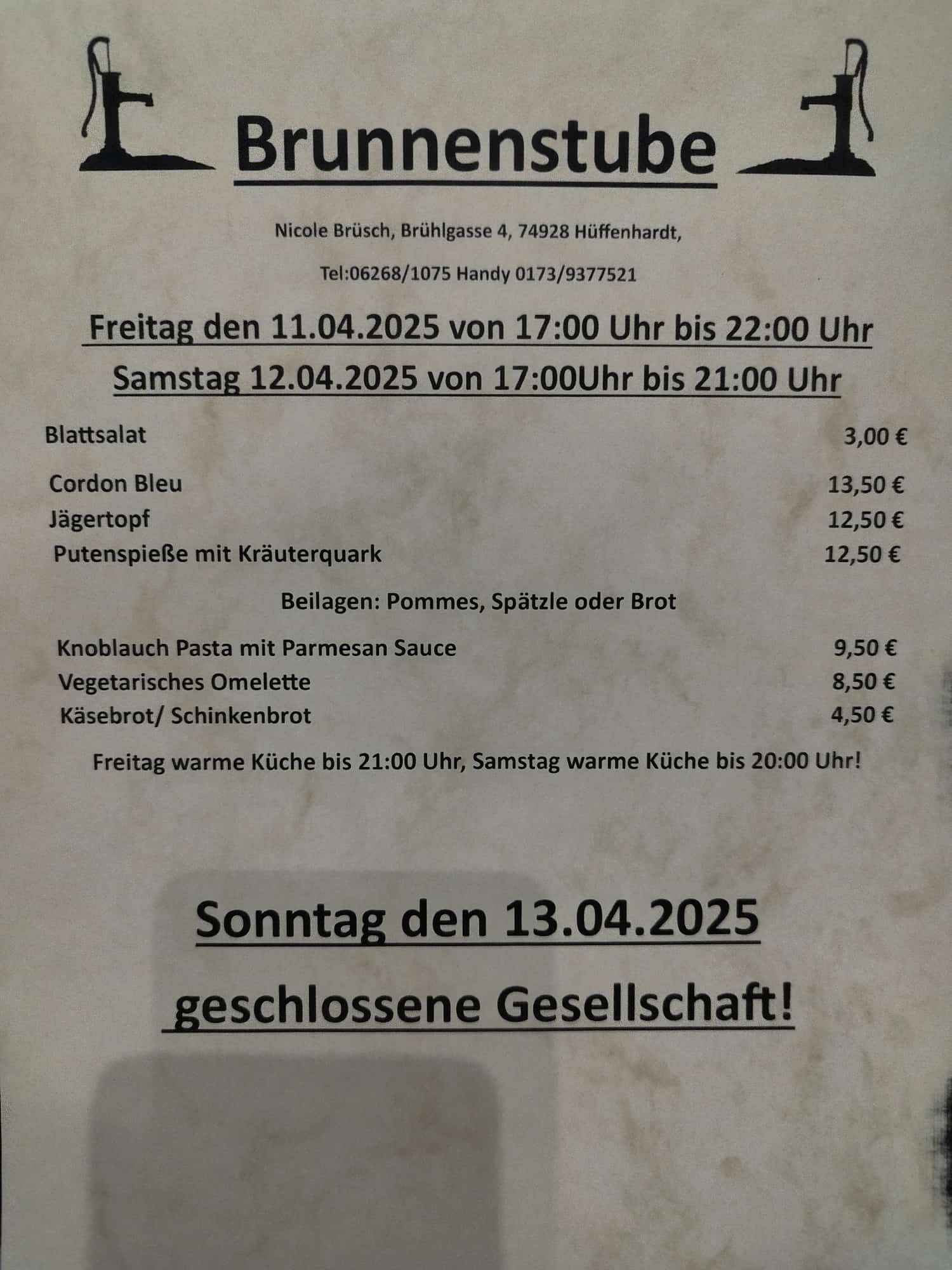 Speisekarte für 2025, Kalenderwoche 15, 11.04.2025 - 13.04.2025