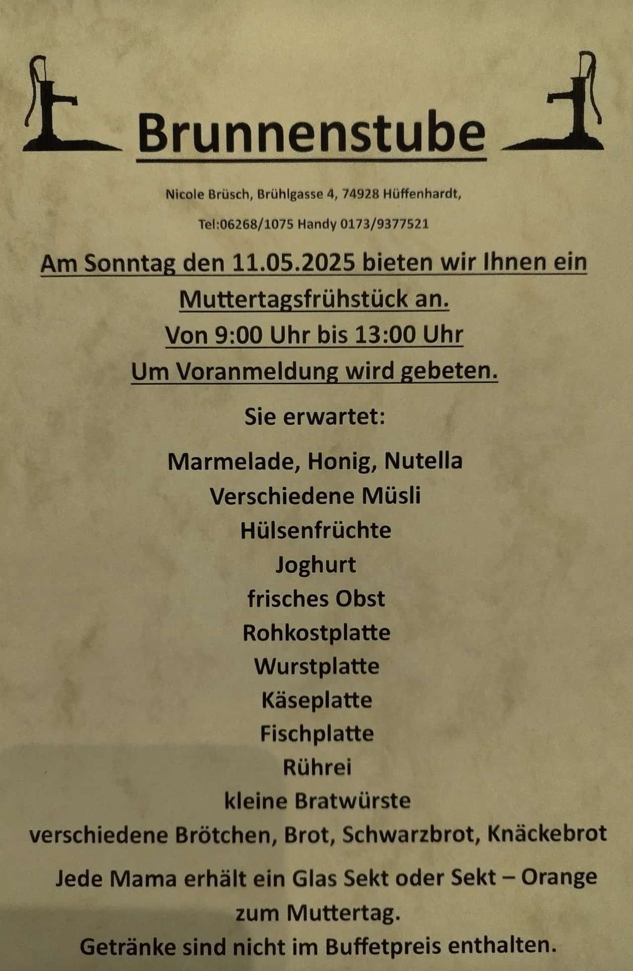 Speisekarte für 2025 Muttertag Frühstück, Kalenderwoche 19, 11.05.2025