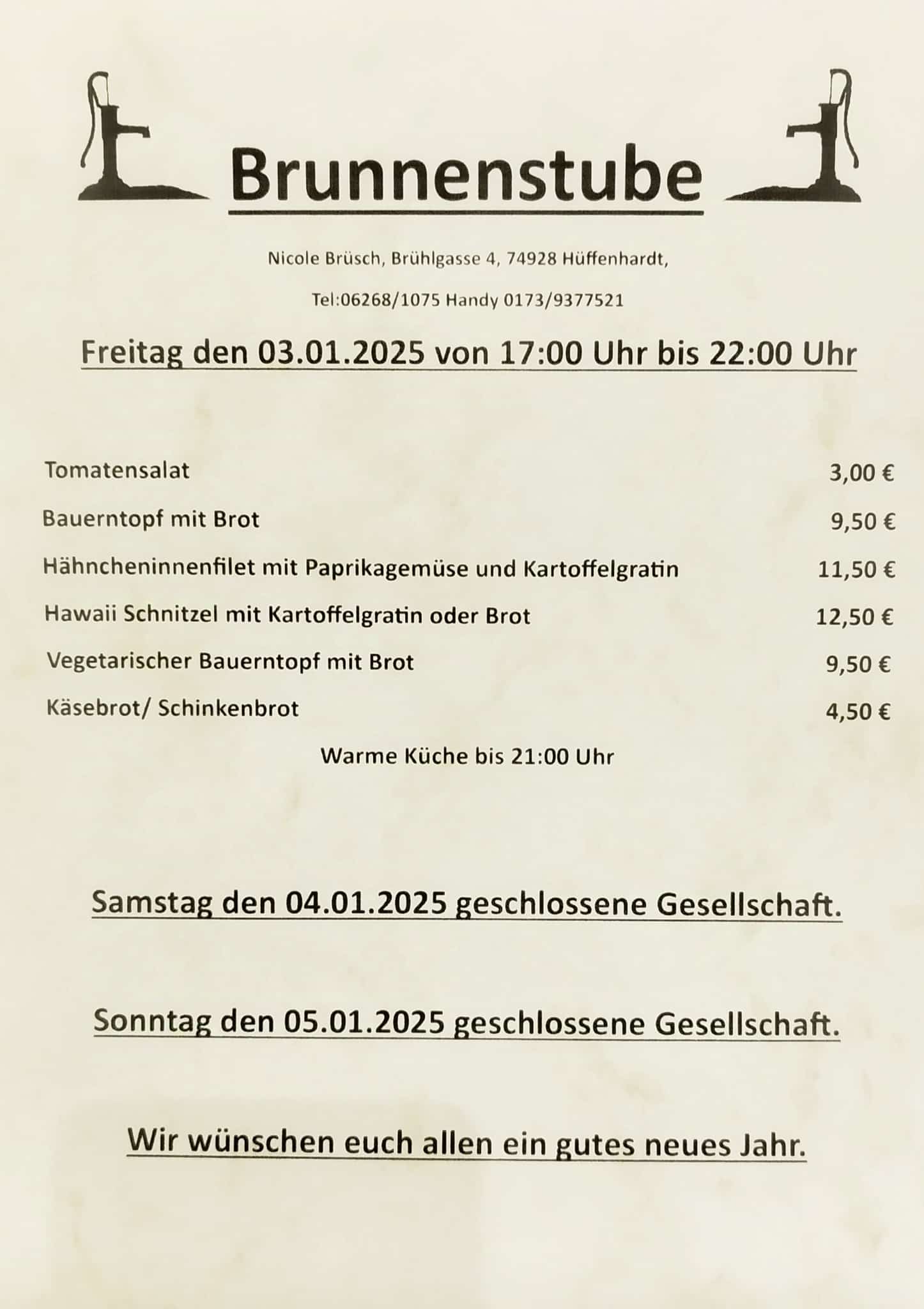 Speisekarte für 2025, Kalenderwoche 01, 03.01.2025