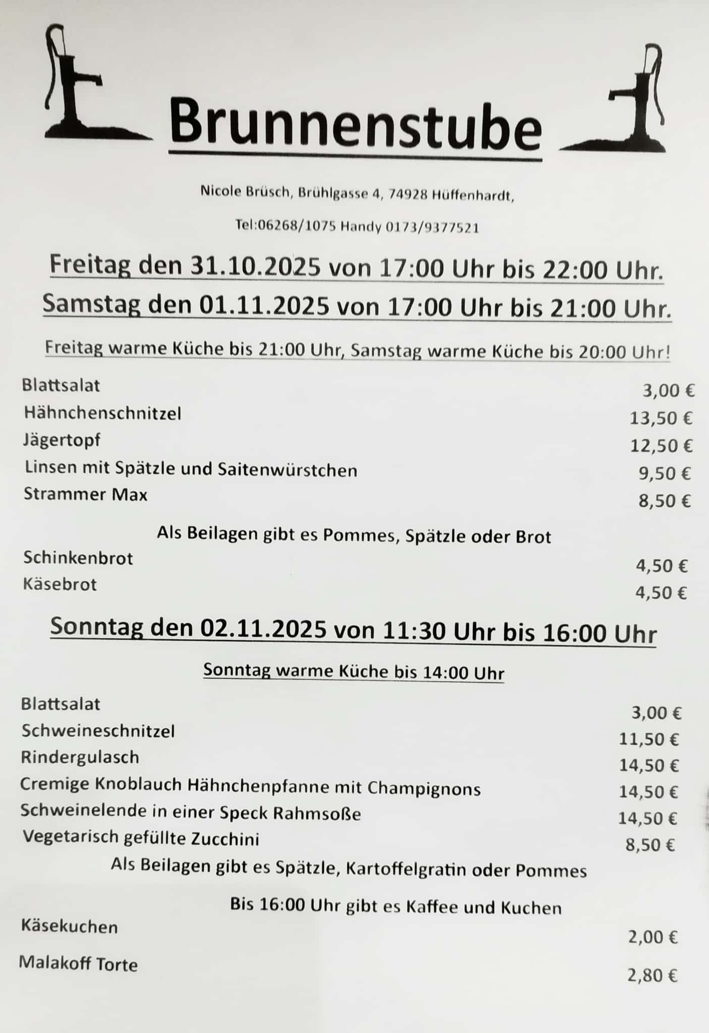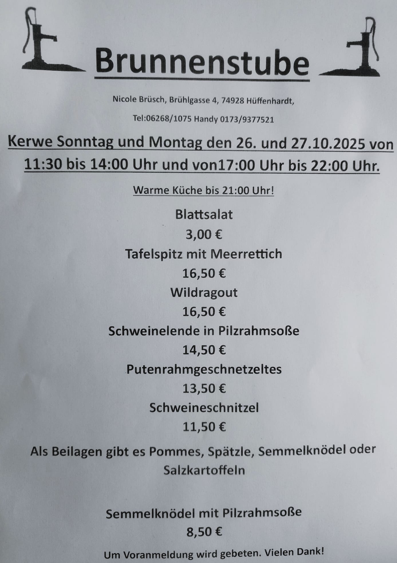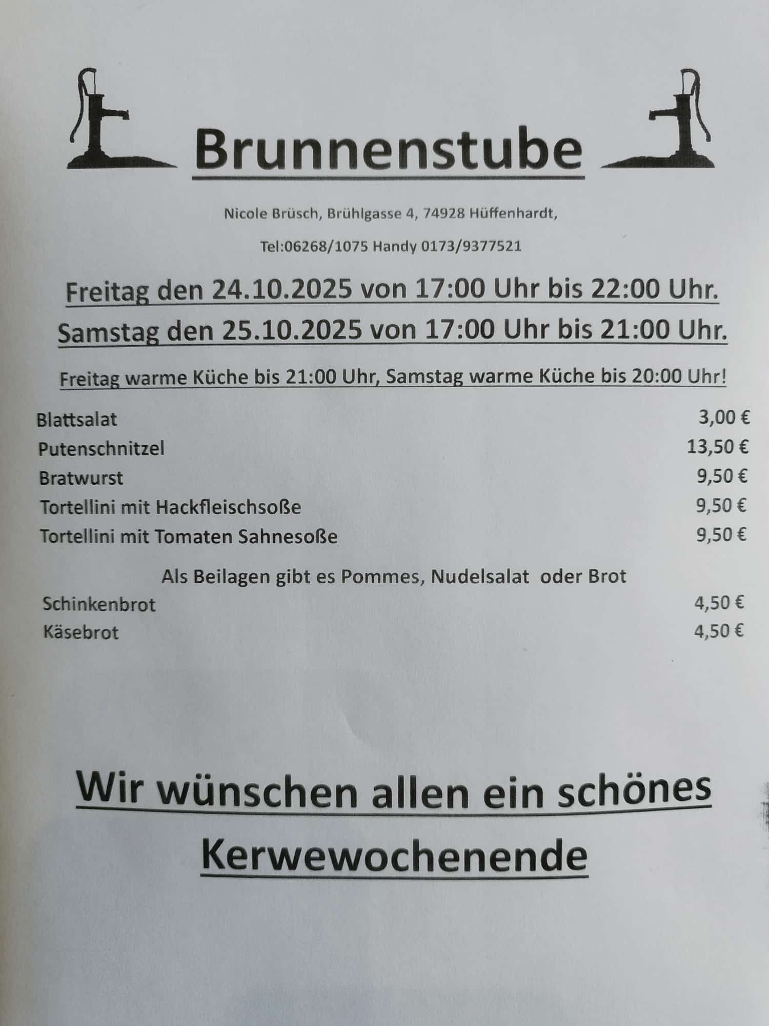 Speisekarte für Kerwe 2025, Kalenderwoche 43, 26.10.2025 - 27.10.2025