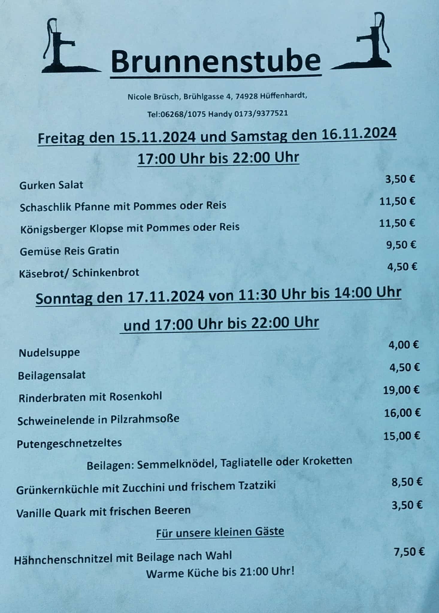 Speisekarte für die Kalenderwoche 46, 15.-17.11.2024