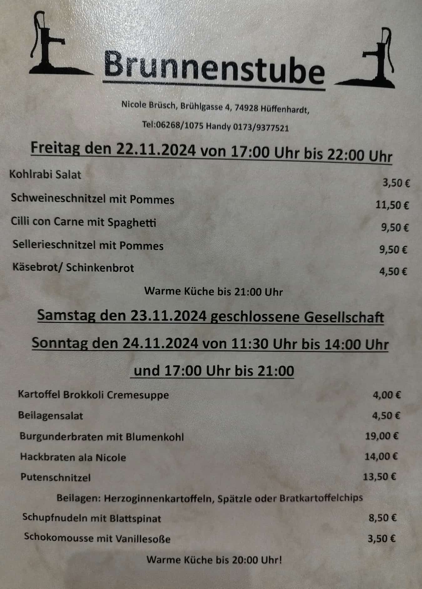 Speisekarte für die Kalenderwoche 47, 22.-24.11.2024